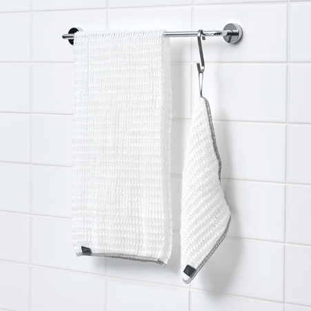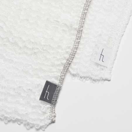 白いタオルにさり気ないステッチとタグの色使い。識別したい場合も安心です。