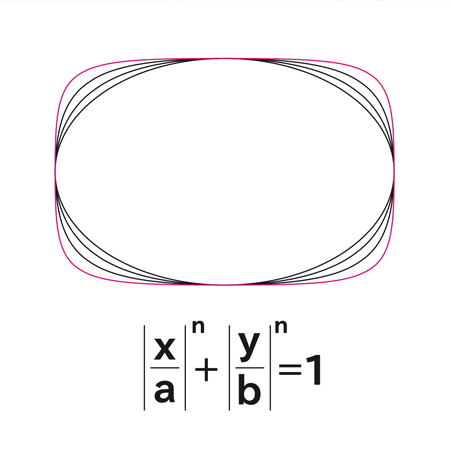 四角と丸の中間であるスーパー楕円は、丸よりも丸みを感じ、ふっくらと柔らかい印象です。北欧のデザインから広がり、建築や家具、スマートフォンアプリのアイコンなどでも使用されています。