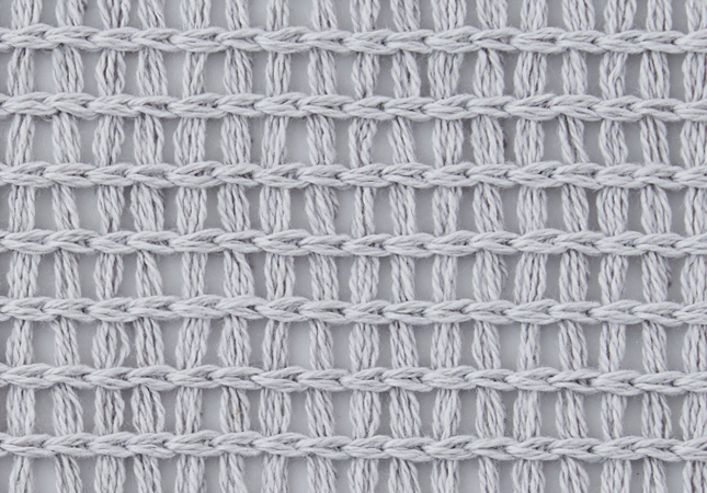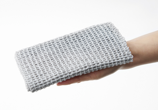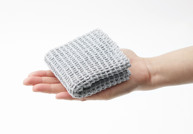 編み目に約2×4mmの隙間を設け、糸同士の間隔も広く設計した台フキン。