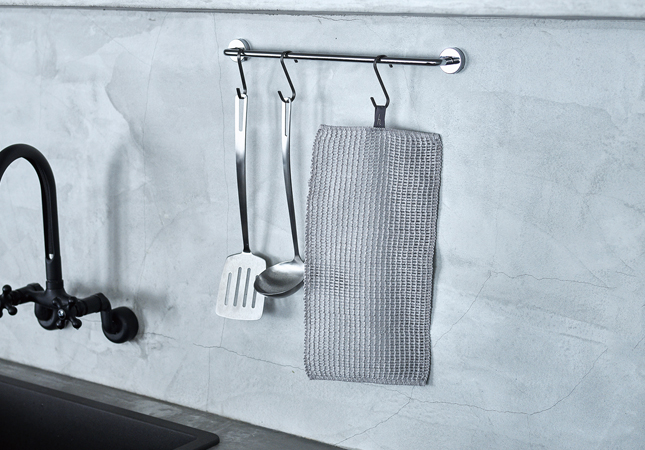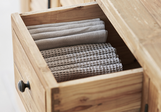 綿素材と生地の厚みでコンロ周りでも使いやすい、コンパクトサイズの台フキンができました。汚れを吸着するために、編み目や凹凸を大きく設計した、頼れる一枚です。