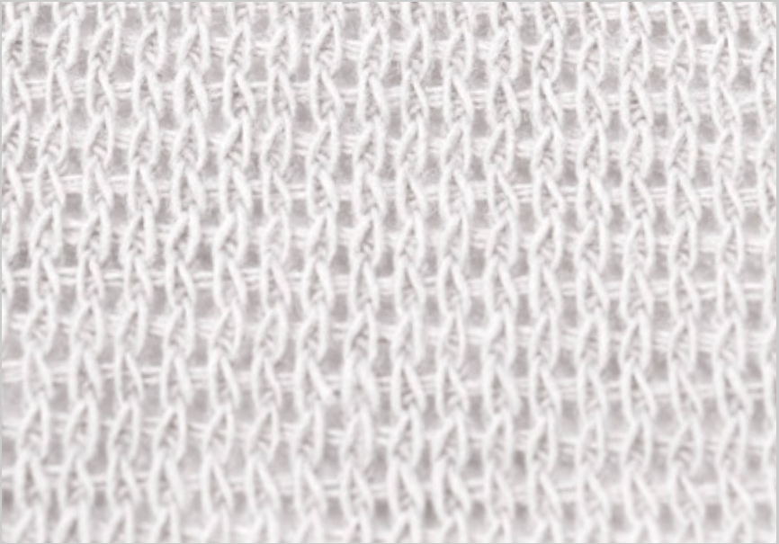 隙間をもたせてゆったりと編まれているので、通気性も高く、速乾性があり清潔に保ちやすい仕上がりです。