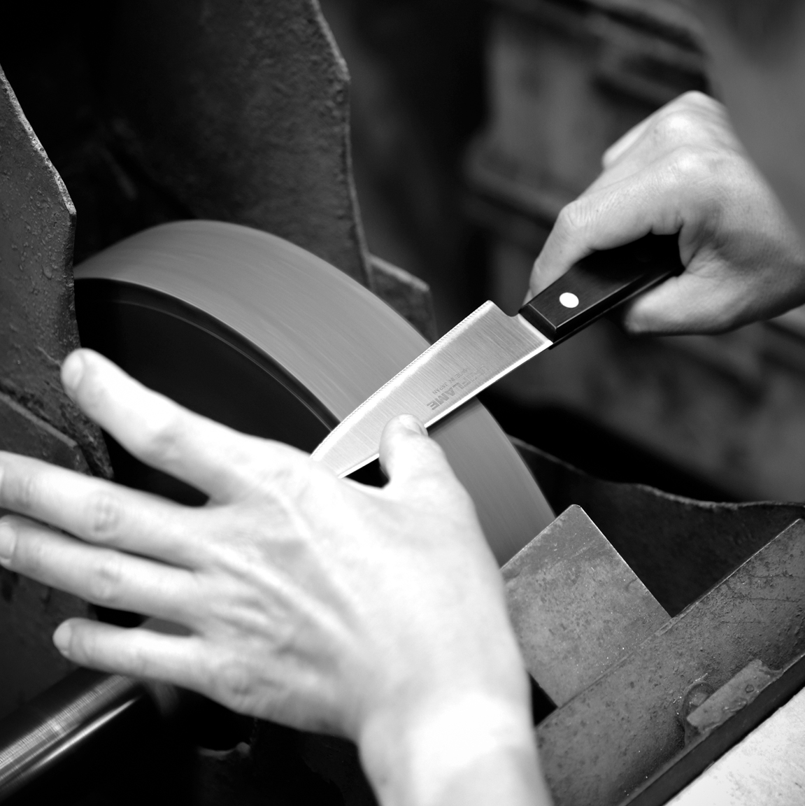 岐阜県関市は、鎌倉時代から続く刃物の街です。良質な焼刃土に豊かな森林、水資源。刀鍛冶にとって理想的な風土条件が、多くの刀匠を集めてきました。それらは包丁の製造などに形を変え、刃物づくりの伝統は受け継がれ、現代では「世界三大刃物産地」に数えられています。丁寧な手仕事が、優れた切れ味・美しい断面を生みだしています。