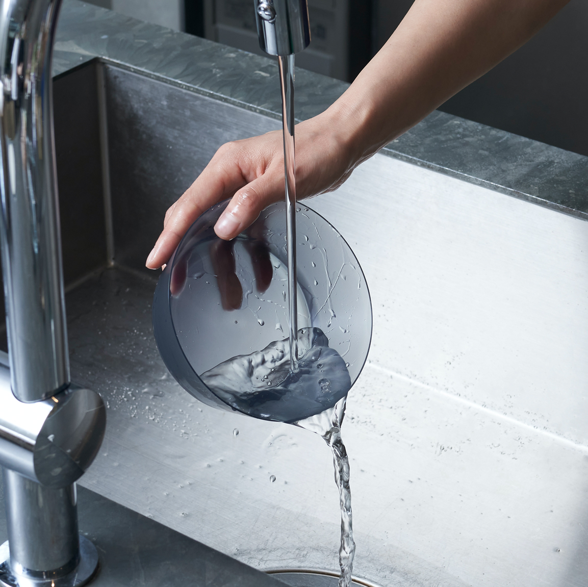 汚れ落ちがよく、色移りもしにくい特別な樹脂製で、洗い上がりがさっぱりします。